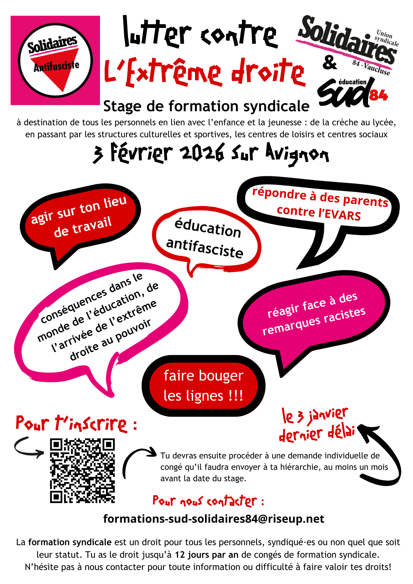 ORGANISÉ PAR SOLIDAIRES 84 et SUD éducation, le 3 février 2026